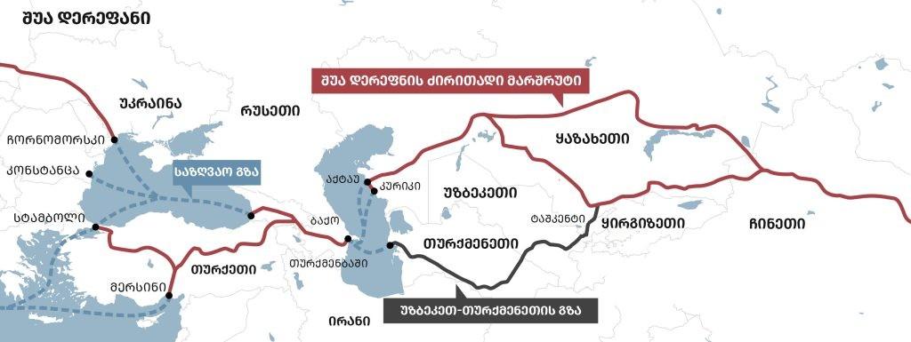 INSTC დერეფნის შეზღუდვამ დატვირთვა გადაიტანა ე.წ. შუა დერეფანზე, რომელიც აღმოსავლეთ-დასავლეთს სამხრეთ კავკასიის გავლით აკავშირებს (იხ. სურათი).
